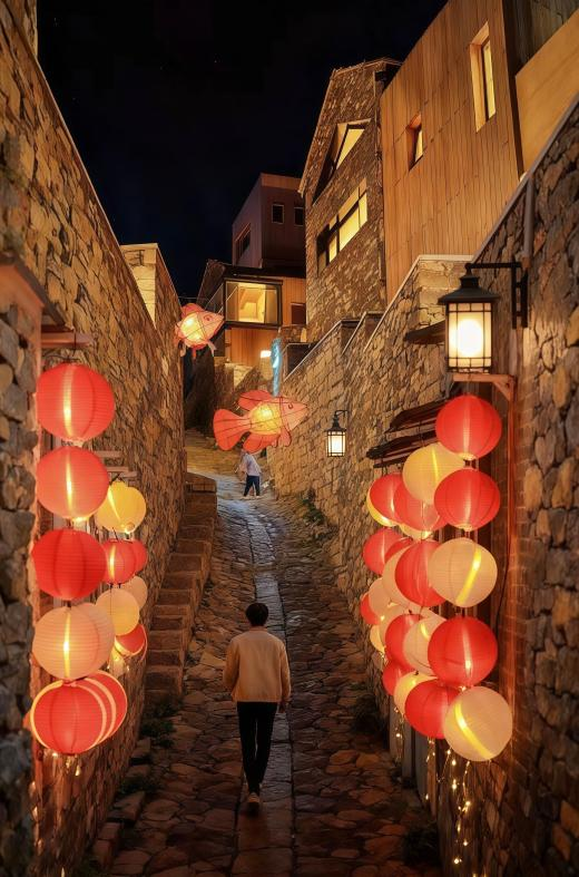 活动内容丰富多彩,涵盖提灯游园、萌宠互动、非遗体验与复古影像等多个环节。游客可携爱宠一同参与“月宫换装”,佩戴专属官牌化身“月宫巡使”,在古槐树下C位“拜月”,萌趣十足;现场设置爪印签名墙,留下专属祝福,仪式感满满。专为宠物定制的健康月饼让“汪星人”也能共享节日滋味,社交盲盒环节更可随机结识“宠友”,完成打卡任务即可领取限量版“月宫零食礼包”。游园途中,非遗鱼灯、古墙花灯与手作灯笼交相辉映,饮马泉畔、月下老槐等打卡点随手一拍即成国风大片。此外,现场还配备了多台富士一次性胶片机,捕捉游客与宠物的温馨瞬间,冲洗后以“慢递”形式发送至邮箱,用延迟惊喜传递复古浪漫。值得一提的是,入住山乡东泉民宿的游客可以免费参与活动。