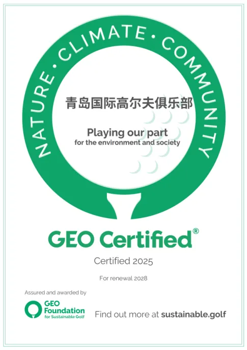 展望未来,青岛高尔夫公司将以GEO认证为新起点,持续深化绿色运营,打造生态文明型球场典范,探索可持续的高尔夫发展路径,为国家“双碳”目标贡献企业力量。
