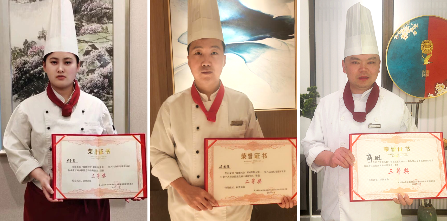 近日,由山东省文化和旅游厅、山东省总工会、共青团山东省委、山东省妇女联合会、山东省旅游饭店协会联合主办的山东省“技能兴鲁”职业技能大赛——第八届山东省旅游饭店行业西式烹饪、中式烹饪技能竞赛在烟台圆满落幕。山东文旅酒店集团参赛选手凭借扎实的专业技能和沉稳的临场发挥,在激烈角逐中斩获一等奖1名、二等奖1名、三等奖2名及多个优秀奖。