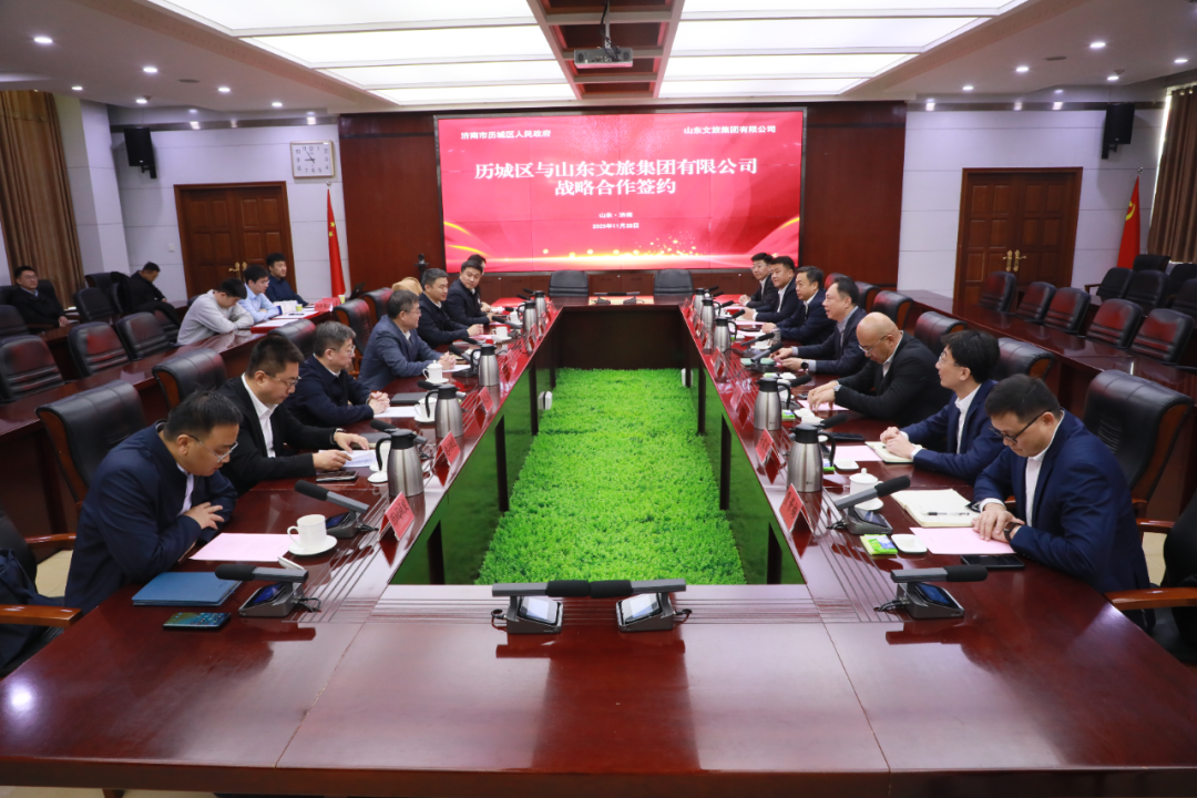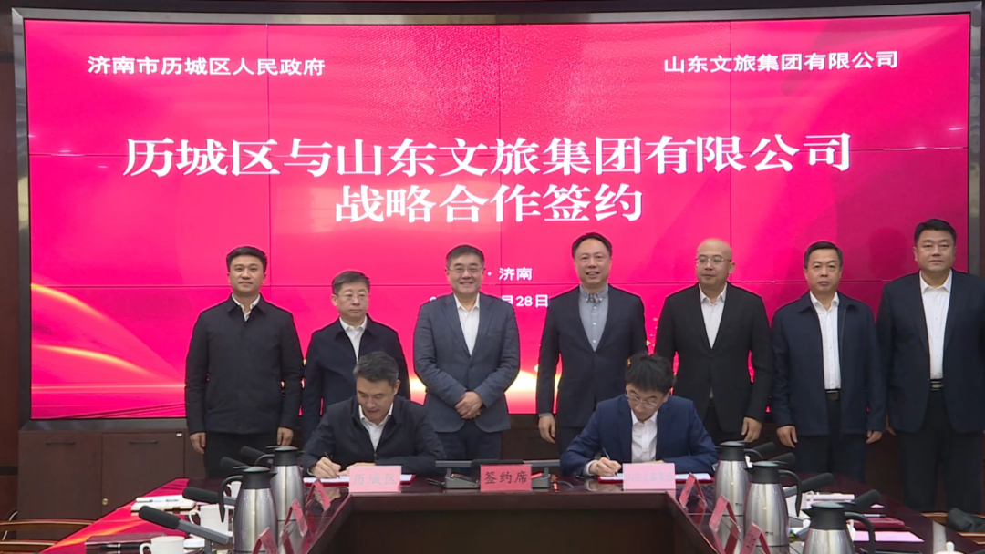 11月28日,山东文旅集团与济南市历城区政府战略合作签约仪式在历城区政府举行。历城区委书记张军主持签约仪式并讲话,山东文旅集团党委书记、董事长丁艺出席仪式并讲话。