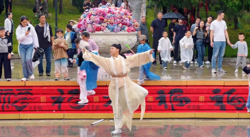 在空间改造方面,景区采取“微改造、精提升”策略,对山门至过山车站点的功能通道进行文化重塑,打造为“百福路”文化体验廊道。通过铺设百福地刻、设置互动装置中国大鼓、心愿墙及投壶、木射等传统游戏体验区,并配合定时非遗巡游表演,将通行空间成功转型为文化展示与互动场域,增强游客行进过程中的文化感知。