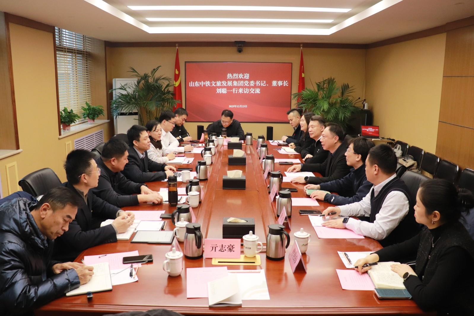 12月23日,山东中铁文旅发展集团党委书记、董事长刘聪一行到访山东文旅集团,集团党委书记、董事长丁艺会见。