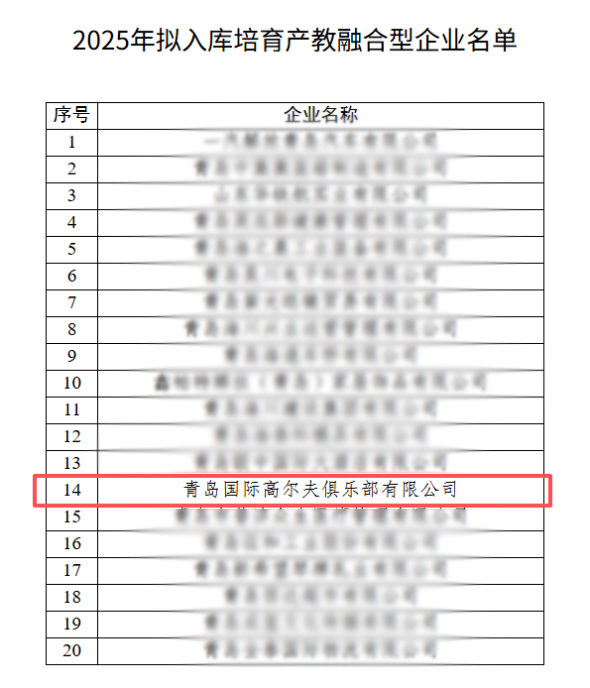 近日,青岛市发展和改革委员会发布青岛市2025年入库培育产教融合型企业名单,青岛高尔夫公司凭借产教融合、校企合作等方面的突出表现,成功入选青岛市产教融合企业培育库。