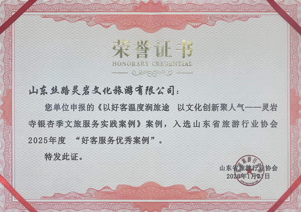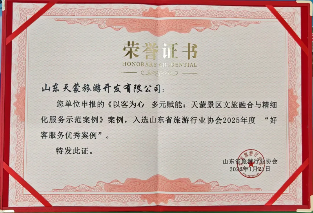 近日,在山东省旅游行业协会六届二次会员代表大会暨2026年年会上,山东文旅景区集团旗下天蒙景区、灵岩胜境旅游区凭借其在文旅消费创新与卓越服务实践中的突出成果,成功入选山东省旅游行业协会2025年度“好客服务优秀案例”。这一荣誉不仅是对集团景区团队专业能力的肯定,更是对集团深度践行“好客山东”服务标准、积极探索文旅高质量发展路径的权威认可。