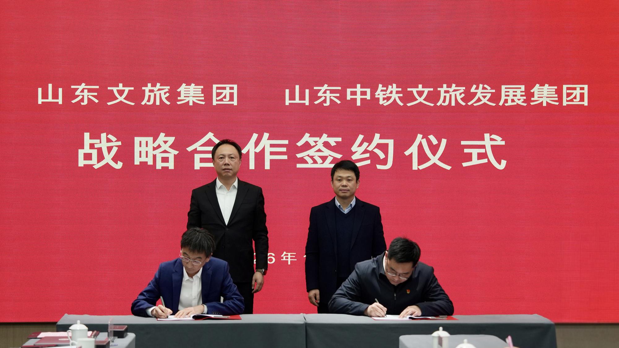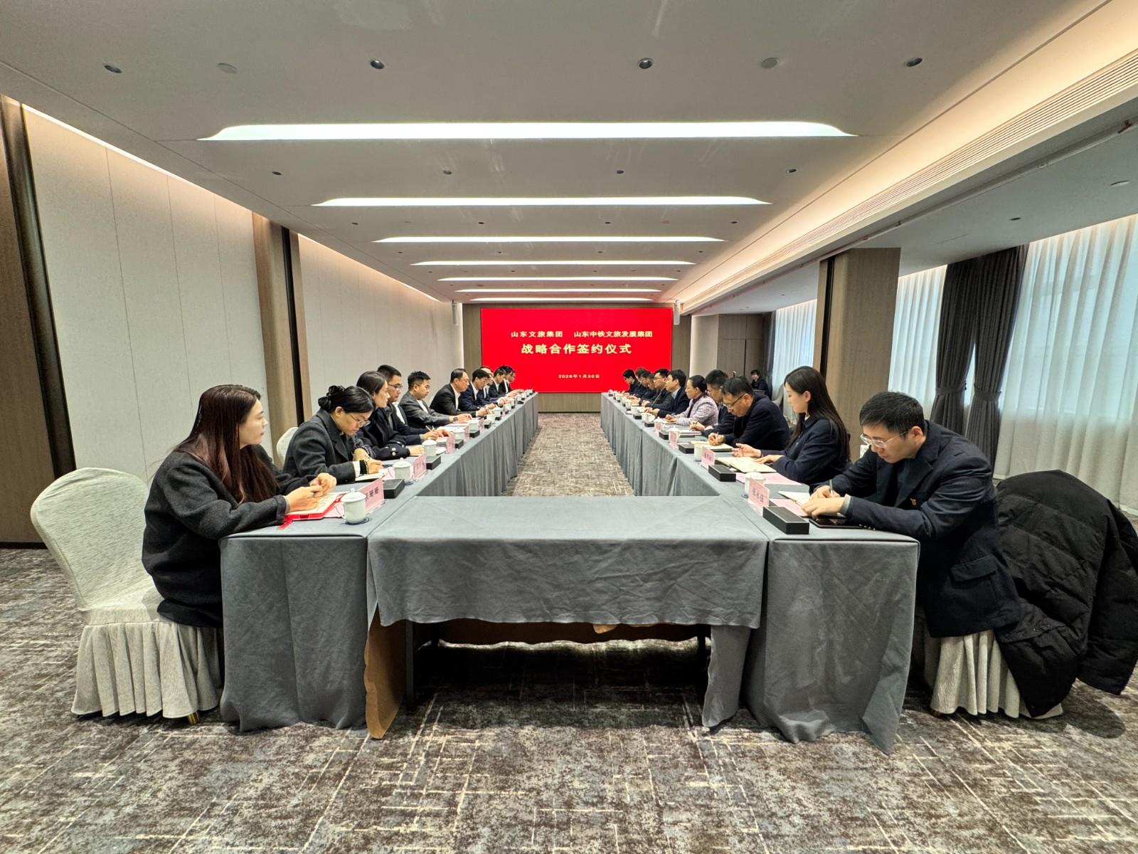 1月30日,山东文旅集团与山东中铁文旅发展集团在济南举行战略合作签约仪式。山东中铁文旅发展集团党委书记、董事长刘聪,山东文旅集团党委书记、董事长丁艺出席签约活动并座谈交流。