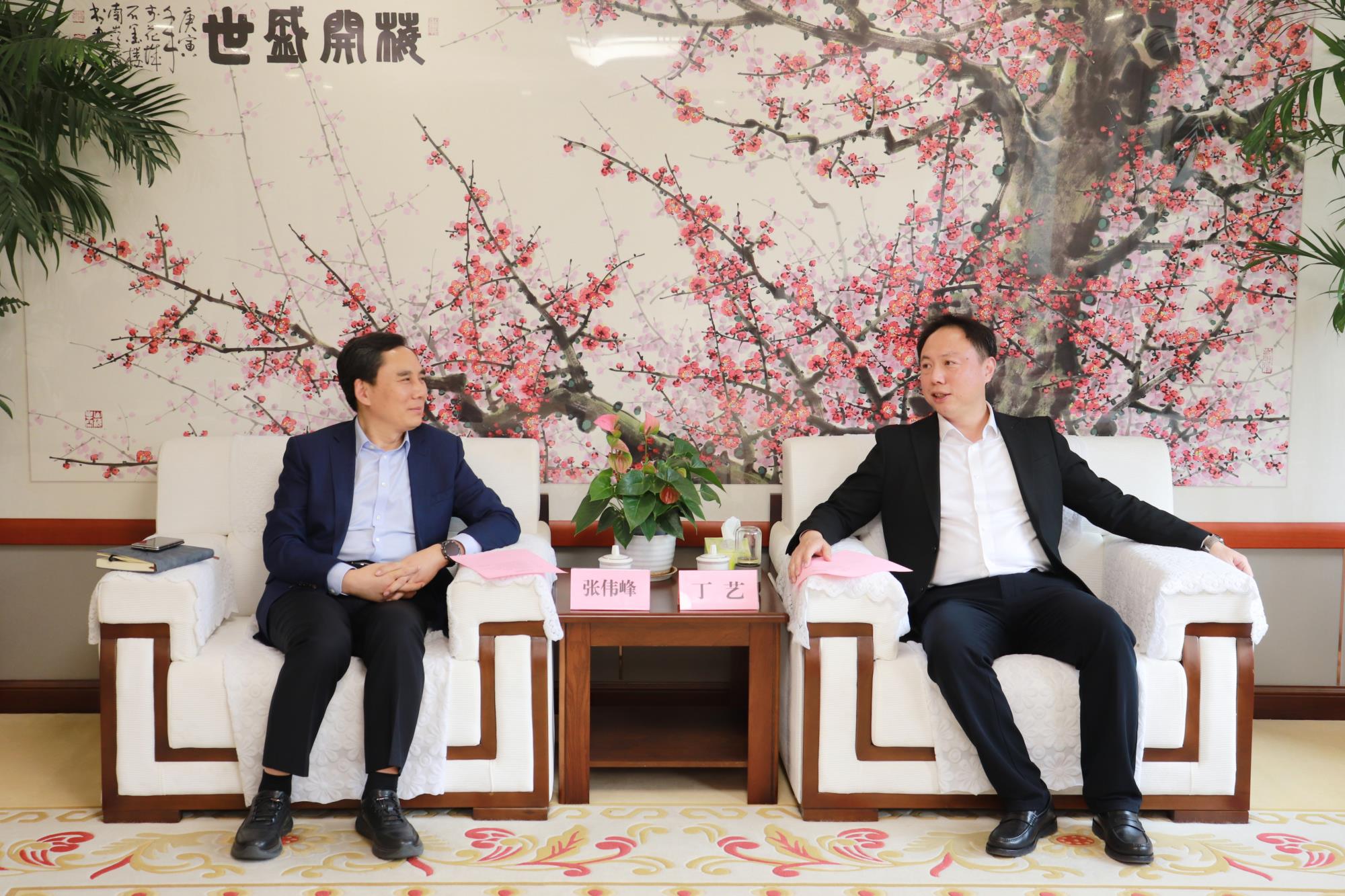 3月17日,费县县委书记张伟峰一行到山东文旅集团座谈交流,集团党委书记、董事长丁艺会见。